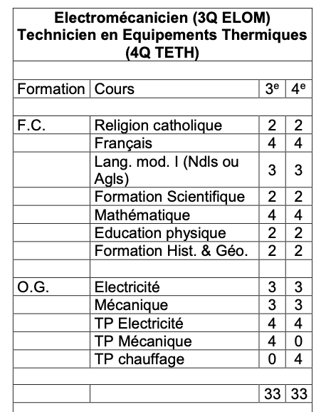 L’option Technicien en équipements thermiques est étroitement liée au domaine de la construction. Nos élèves y reçoivent une excellente formation dans le domaine du chauffage et de la climatisation de base. Le jeune est directement sensibilisé aux techniques de régulation capables de gérer de manière optimale à la fois le confort climatique et l’économie d’énergie ainsi que le rendement maximum pour une pollution minimale due à la combustion